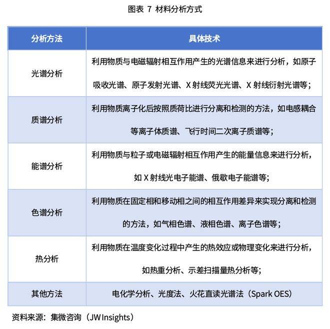 材料分析可分为三大方面:材料结构的测定、材料形貌观察和材料成分分析。材料成分分析主要是指通过各种检测手段对样品的成分进行定性定量的分析。常用的分析方法主要有化学分析法、质谱法、光谱法、X射线能量色散谱法(EDX)和电子能谱法。